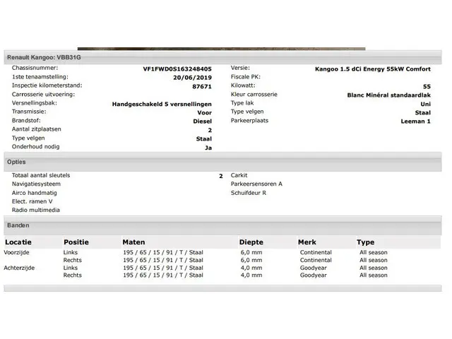 Voertuiggegevens van deze Renault Kangoo